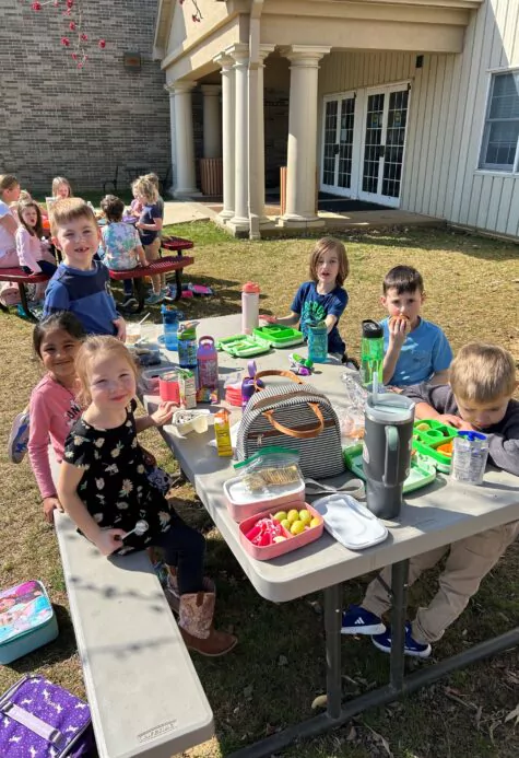 An extended day class is a pre-kindergarten or a preschool class that meets 9:00am-1:00pm instead of 9:00-11:30am like the regular session classes. In addition to eating lunch with their classmates, extended day students also participate in an extra hour of class time.